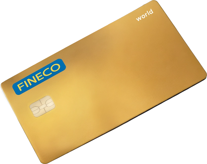 Carta Gold World: per tutte le condizioni economiche e contrattuali del prodotto occorre fare riferimento al Foglio informativo, nonché alla Polizza di assistenza alla persona FinecoBank S.p.A. emessa da SARA Assicurazioni, disponibili sul sito finecobank.com, e a quanto riportato sul sito mastercard.it. La concessione del credito è subordinata all'approvazione della Banca.